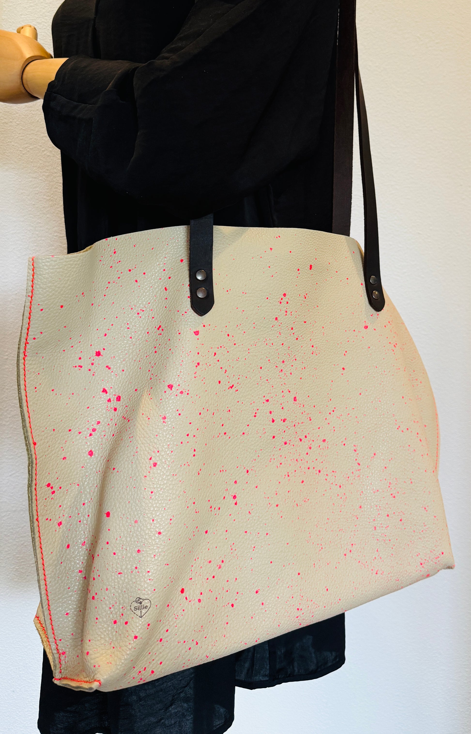Schultertasche „Sam“ - Graffiti - beige mit neon-pink
