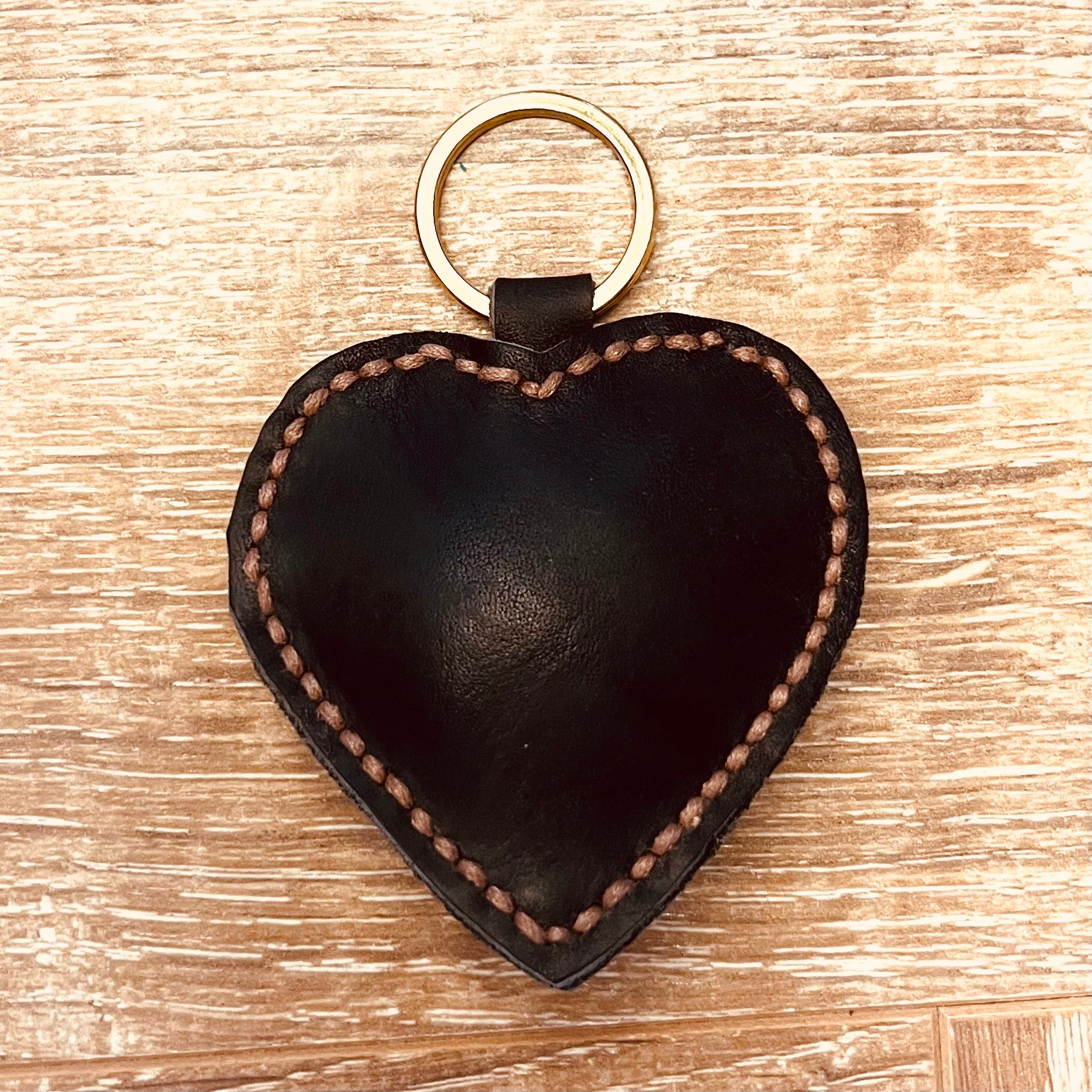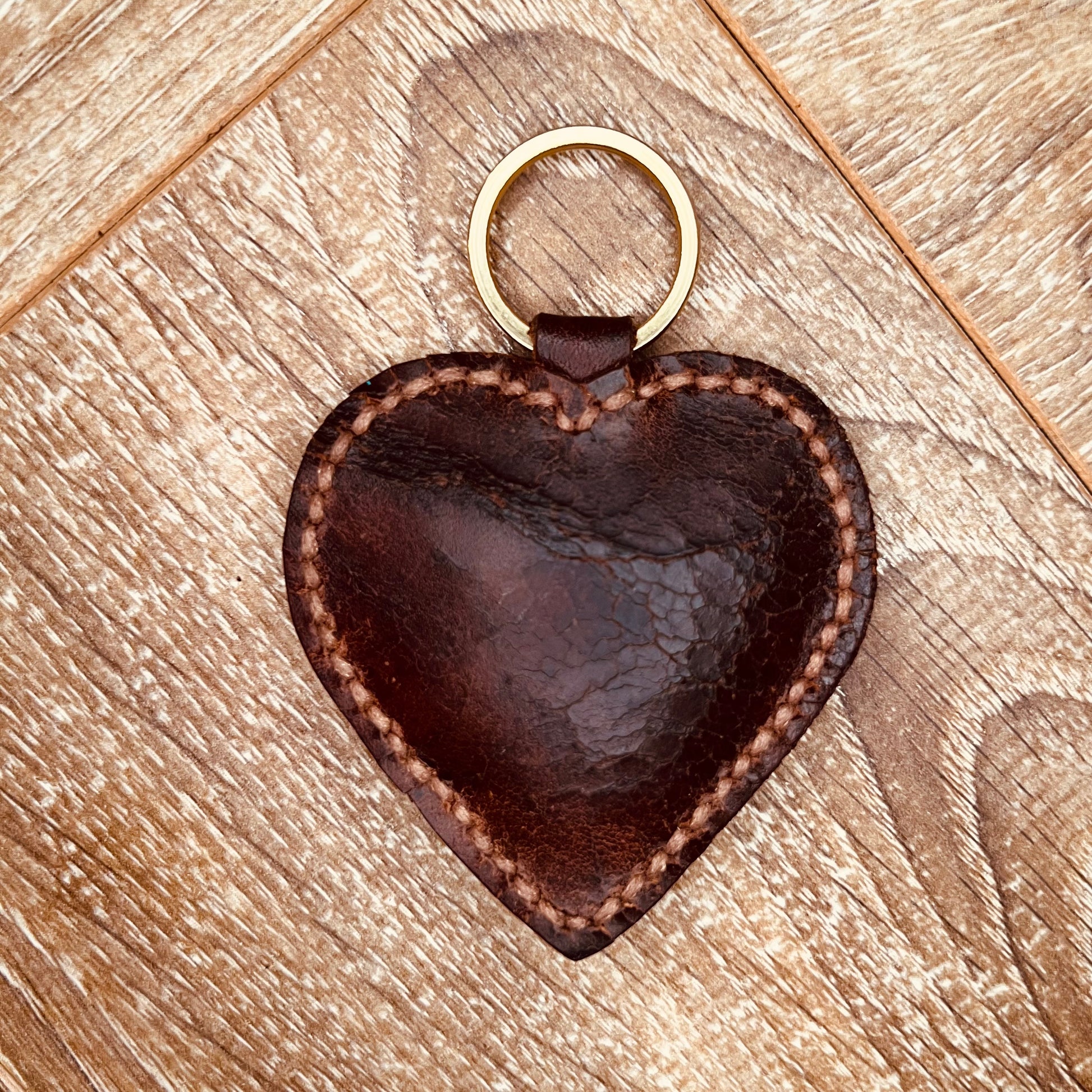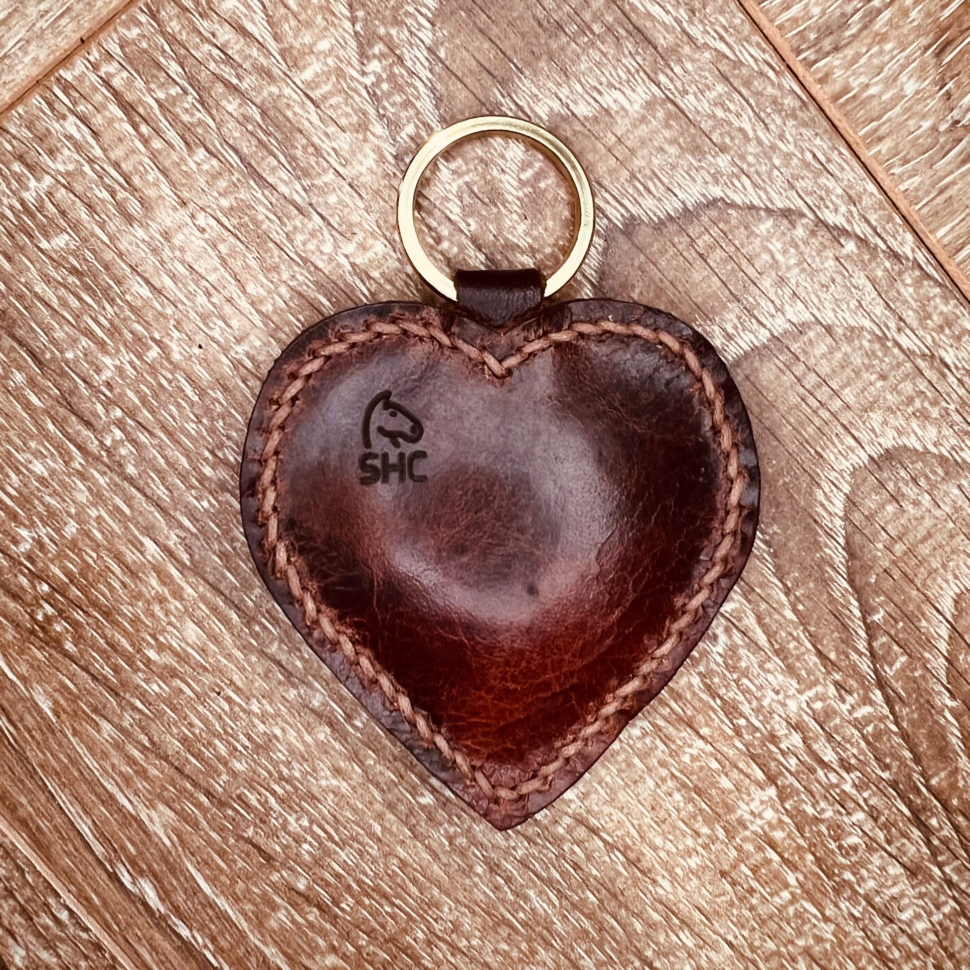 Material: Vintage saddle leather, saddle thread, polyester filling, solid brass ring